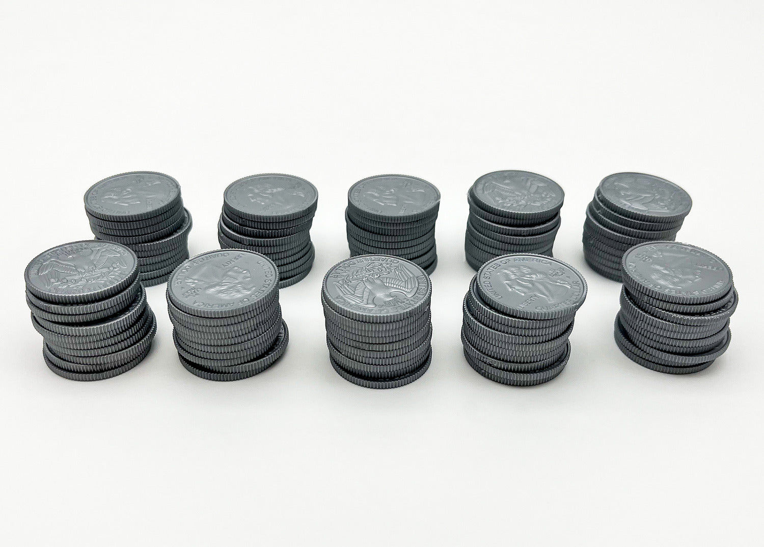 Practice math skills with real-world applications. Includes 100 quarters and suggested activities. Pieces measure about 7/8" in diameter.