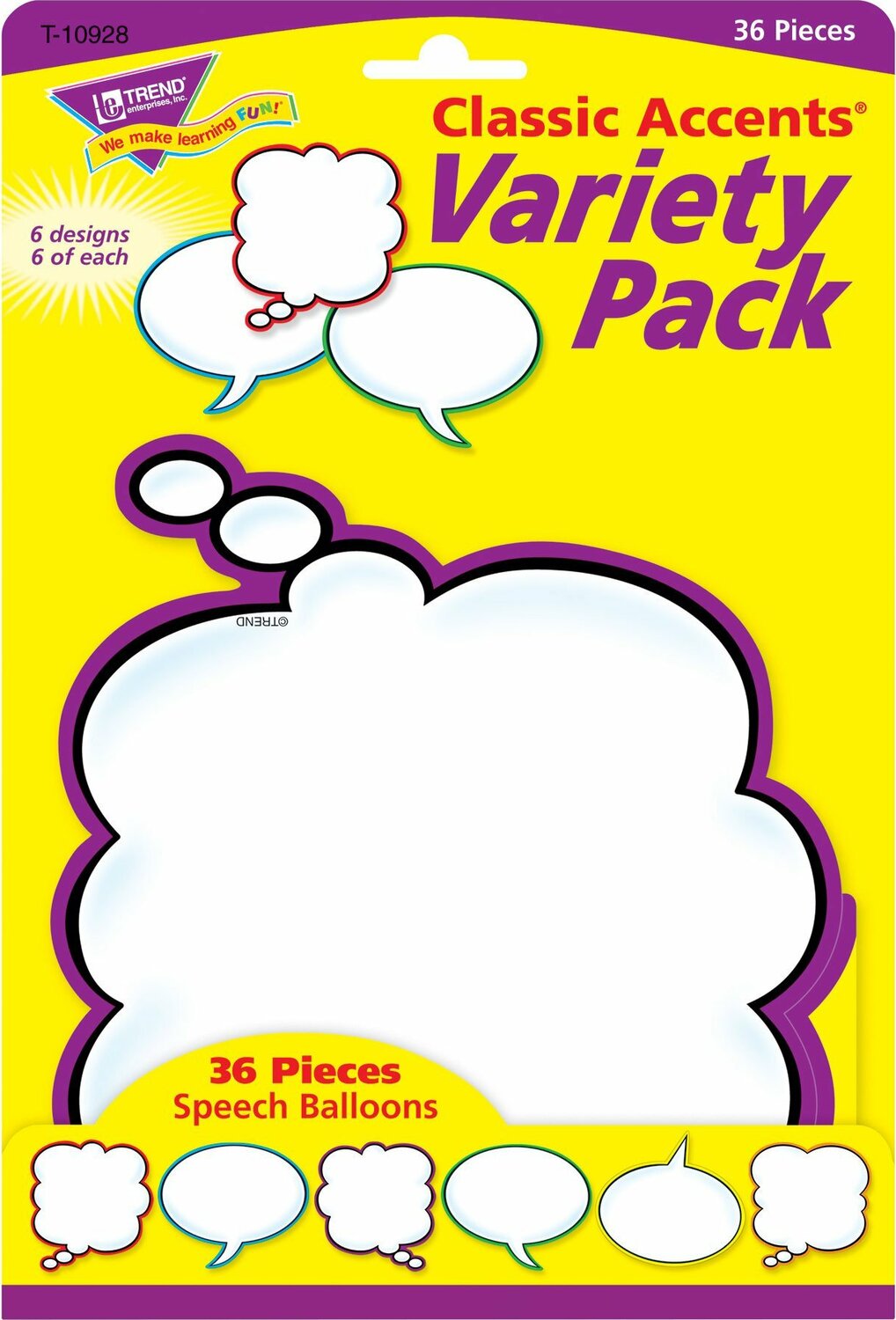 Speech Balloons Classic Accents Variety Pack, 36 Ct