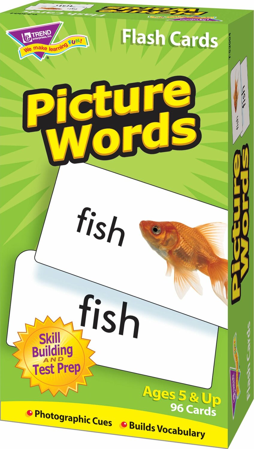 Regular price $11.99Build a strong foundation of reading and communication skills with these content-rich, high-interest flash cards. Photo cues help readers make the mental connection between familiar real-life objects and the written words that represent them; as confidence increases, switch to the other side of the card to challenge reading each word without the picture assistance. Featured, commonly-used words are drawn from the 'Dolch' and 'Fry' Instant Words lists.