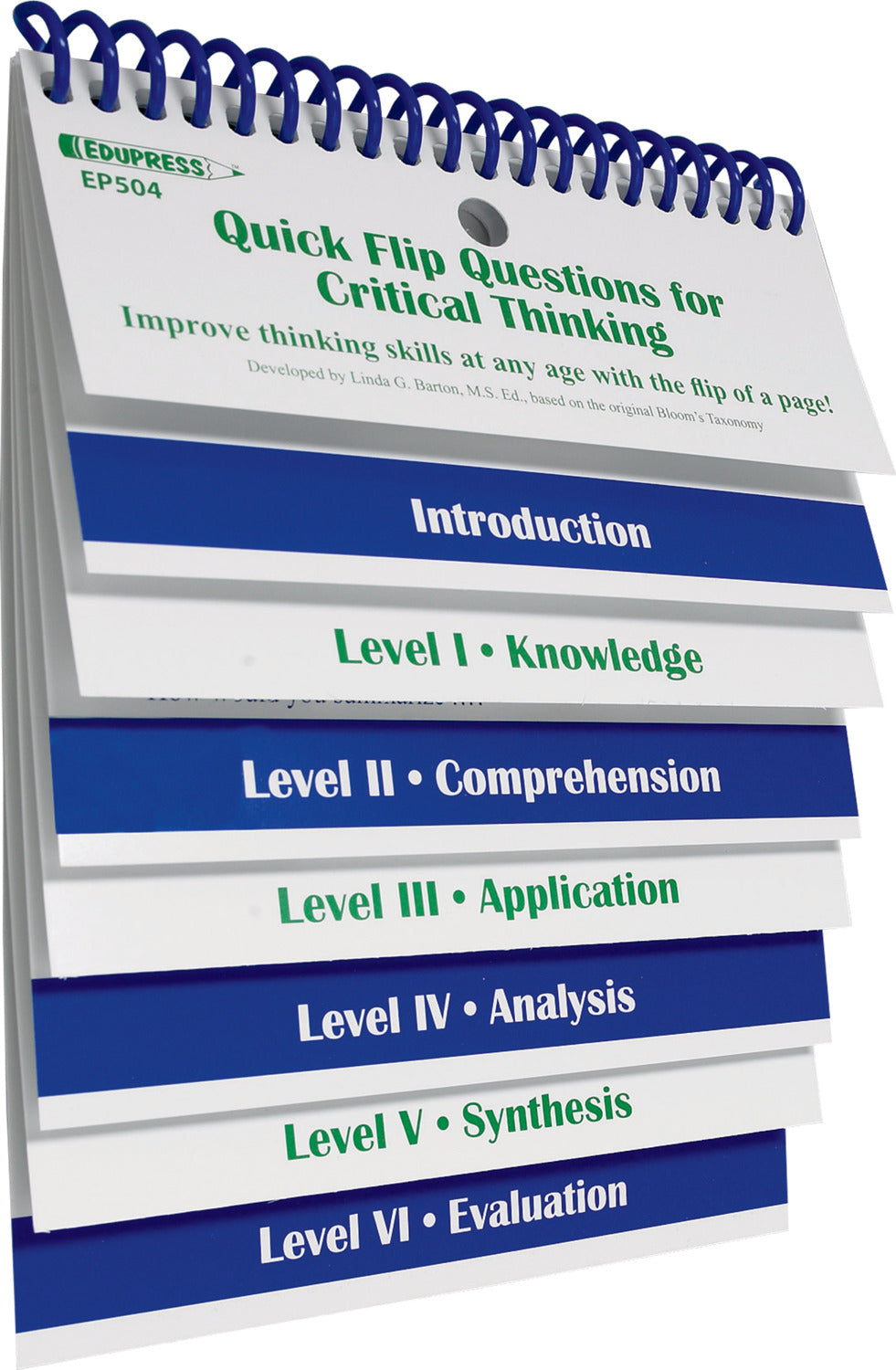 Regular price $8.99Quick Flip Resources provide great teaching strategies right at your fingertips! Handheld, spiral-bound charts make lesson planning easy. Learn how to ask questions, lead discussions, and plan lessons geared to each level of critical thinking. Based on Bloom''s Taxonomy. 5" x 6". Supports requirements of Title I and other federally-funded programs.